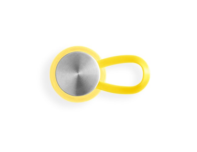 Squeeze em PET 100% reciclado com alça de silicone para facilitar o transporte. A tampa em PP e aço inox possui isolante em silicone. Capacidade até 590 mL. Caixa branca 94651 vendida opcionalmente. Certificação EU Food Grade. ø66 x 230 mm.