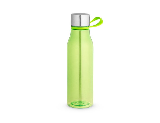 Sua hidratação diária, sustentável. Squeeze de 590ml em PET reciclado com alça e tampa de inox. Seguro, prático e com certificação EU Food Grade.